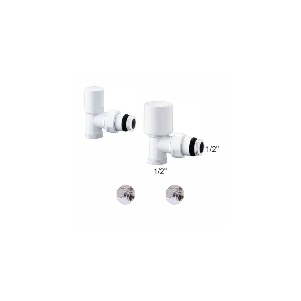 Kit valvole termostatiche bianche a squadra per radiatori con adattatori 1/2" x 1/2" tubo rame D. 14