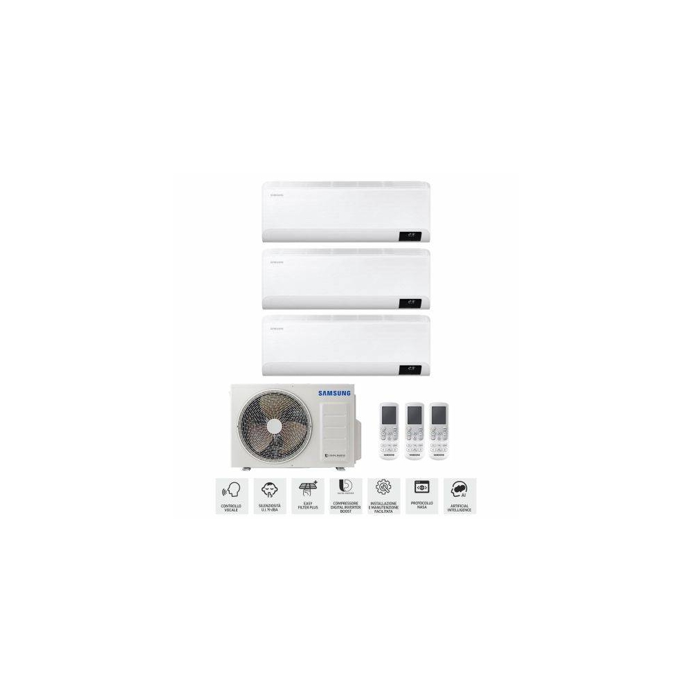 Smart Functions Grazie all'App SmartThings è possibile gestire l'unità dal proprio smartphone e la compatibilità con i principali assistenti vocali permette il controllo via voce. La funzione Artificial Intelligence analizza e apprende le abitudini dell’utente, replicando automaticamente le funzionalità più adatte ad ogni situazione d’utilizzo. Silenziosità Il clima perfetto nel massimo del silenzio: grazie all’impiego di tecnologie evolute, le soluzioni Samsung sono progettate per ridurre al minimo qualsiasi tipo di vibrazione o di rumore per permettere un sonno sereno e sempre più tranquillo. Le unità interne raggiungono infatti una rumorosità di soli 19 dB(A).ù Facile Manutenzione Easy Filter Plus fi ltra i contaminanti e gli allergeni presenti nell’aria, è situato all’esterno, sulla parte superiore dell’unità interna ed è facile da smontare e lavare.