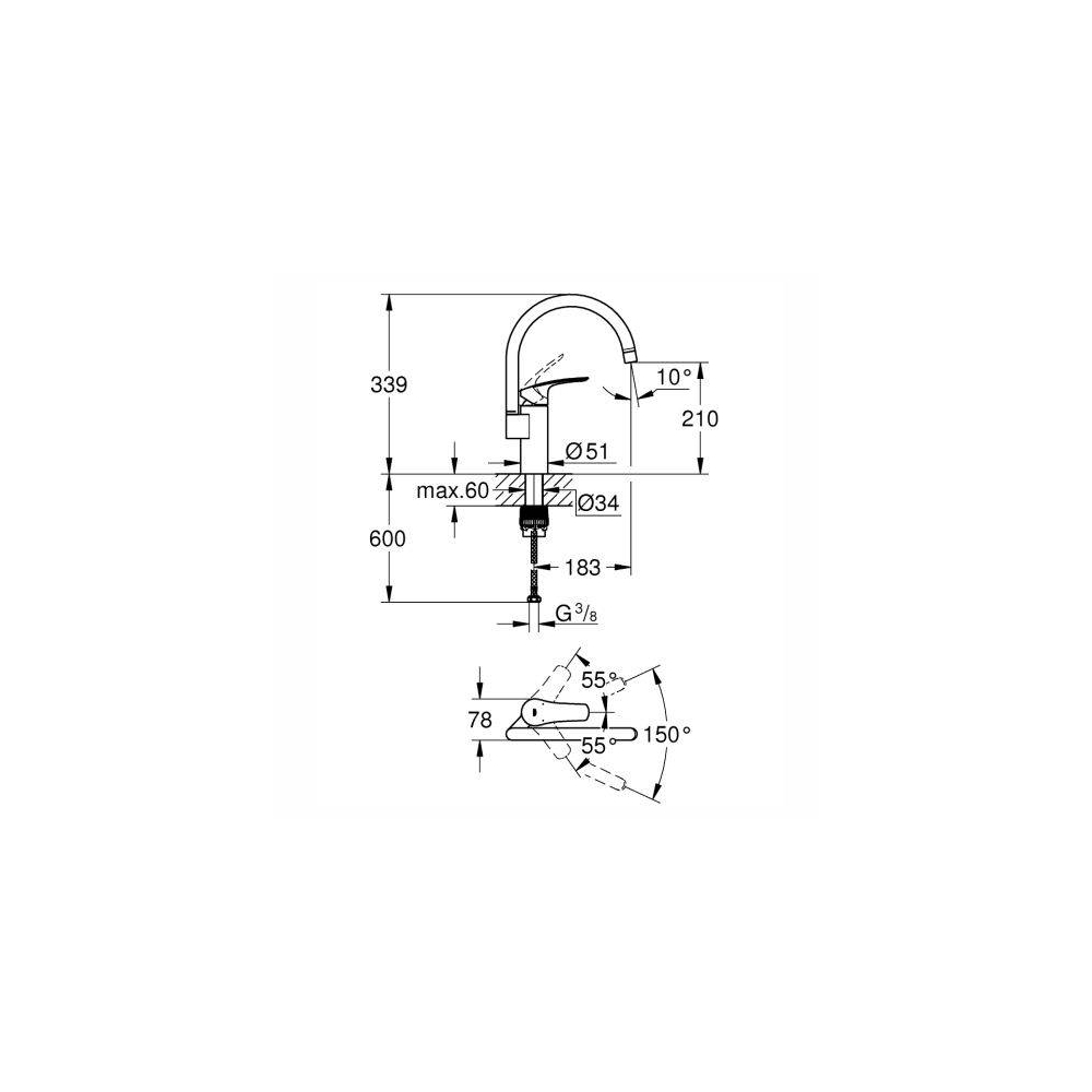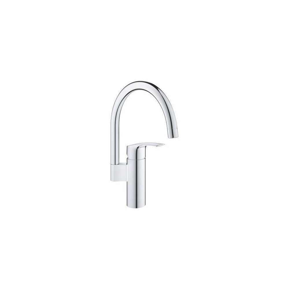 GROHE Eurosmart è un classico del design per la cucina, ora rinnovato e ripensato con un sottile profilo moderno e una bocca più alta del 35% per migliorare il comfort dell’utente. Progettato per installazione monoforo, questo miscelatore monocomando possiede un’alta bocca a C girevole che ruota fluidamente a 150°, perfetta per creare un ambiente di lavoro flessibile senza urtare le pareti. Il miscelatore comprende una tecnologia con cartuccia GROHE SilkMove che garantisce precisione di controllo e fluidità di azionamento per l’intera vita utile del rubinetto. I canali interni isolati GROHE Zero mantengono l’acqua erogata dal rubinetto esente da piombo e nickel. Un limitatore di flusso regolabile fa risparmiare acqua e denaro e assicura consumi sostenibili, mentre un limitatore di temperatura integrato aiuta a prevenire le scottature. La resistente finitura GROHE StarLight (cromo) è antigraffio e mantiene nel tempo tutta la brillantezza originale. Il set GROHE FastFixation Plus rende l’installazione del miscelatore per la cucina facile e veloce, senza necessità di ricorrere a utensili. Per questo rubinetto è richiesta una pressione minima di 1,0 bar.