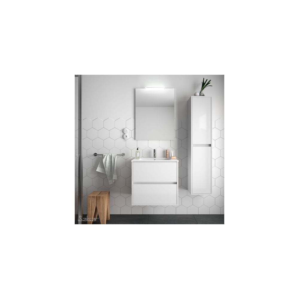 Salgar NOJA Mobile da bagno sospeso 70 cm bianco lucido con lavabo + specchio + applique a led