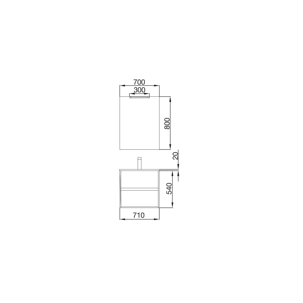 - Specchio a superficie levigata con misure uguali all’ampiezza del mobile. Dimensioni (mm): 700 x 800 mm