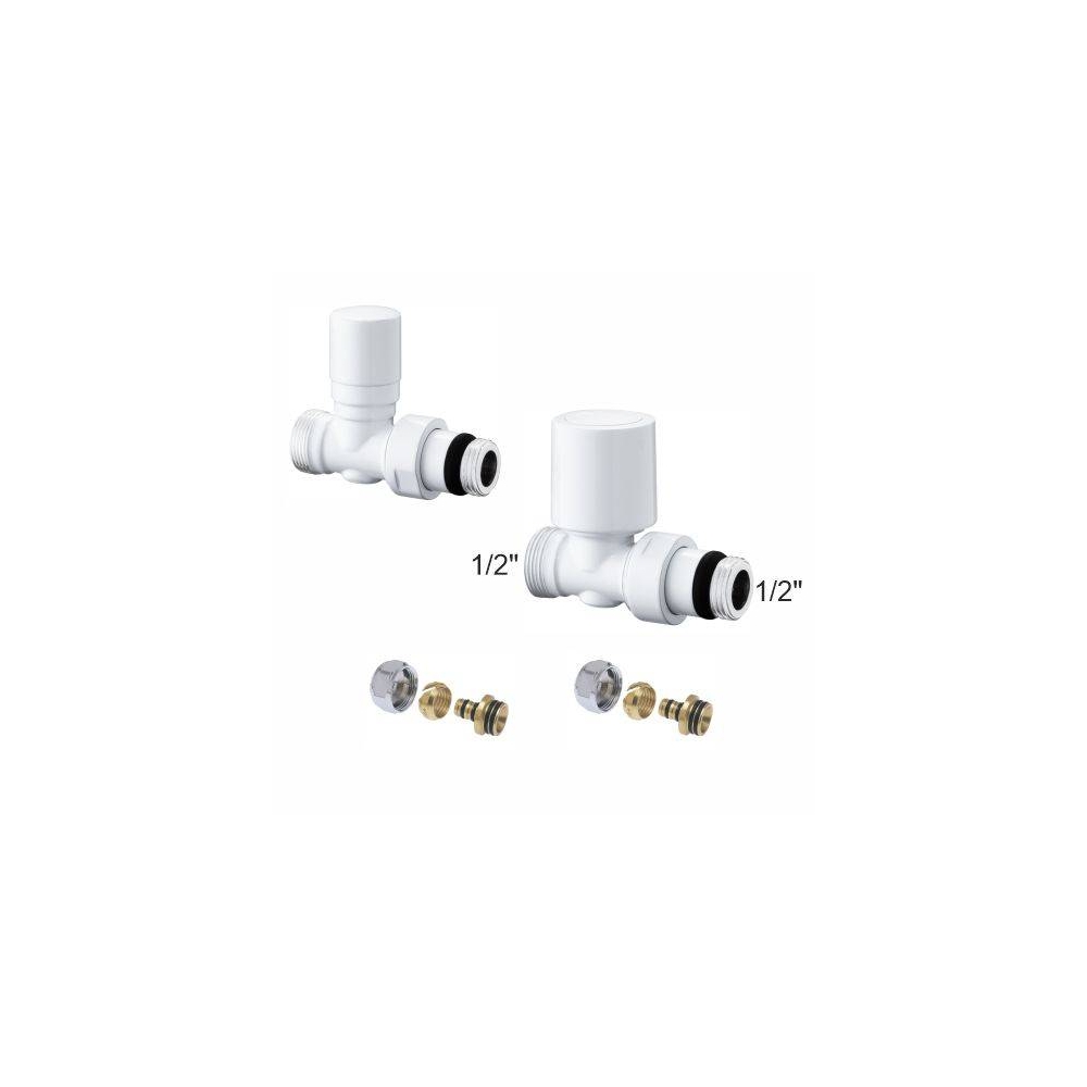 Kit valvole termostatiche bianche dritte per radiatori con adattatori 1/2" x 1/2" tubo multistrato 16x2,25