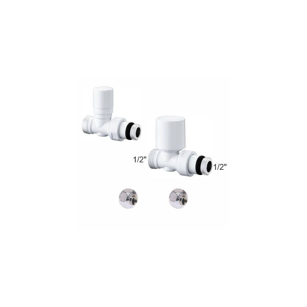Kit valvole termostatiche bianche dritte per radiatori con adattatori 1/2" x 1/2" tubo rame D. 10