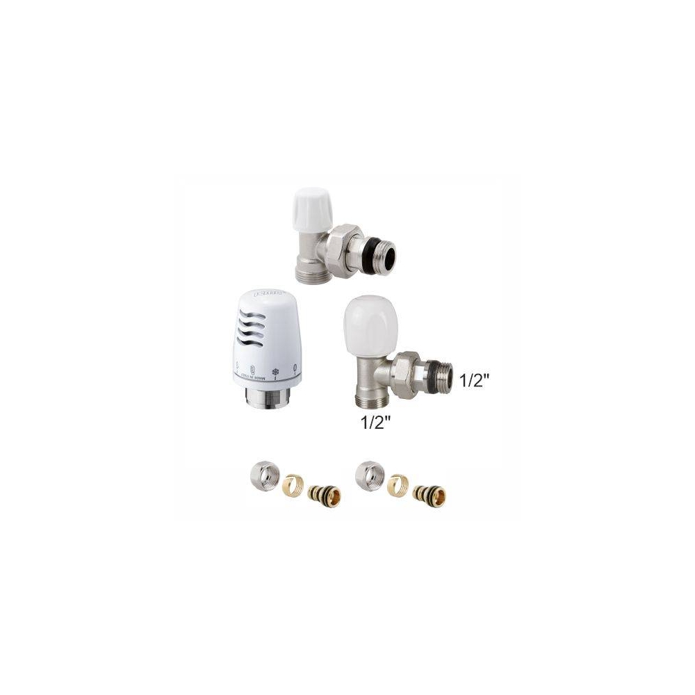 Kit valvole radiatori termostatiche a squadra con testa e adattatori 1/2" x 1/2" tubo multistrato