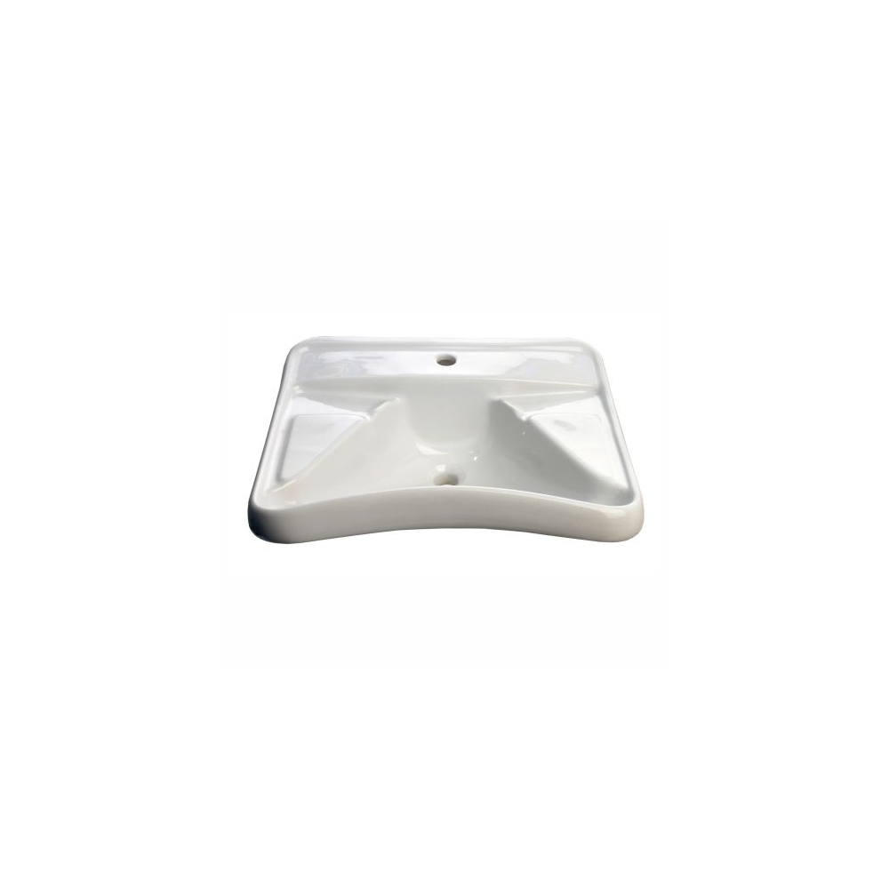 Questo lavabo a mensola permette di accostare alla persona che ne fa uso, i gomiti al bordo della ceramica ed è studiato per poter avvicinare comodamente la carrozzina frontalmente.