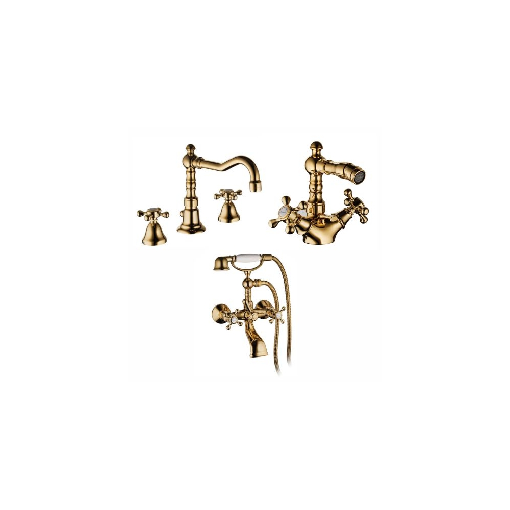 Set batteria per lavabo 3 fori + gruppo bidet monoforo con bocca girevole + gruppo per vasca con deviatore RETRO COLOR Palazzani