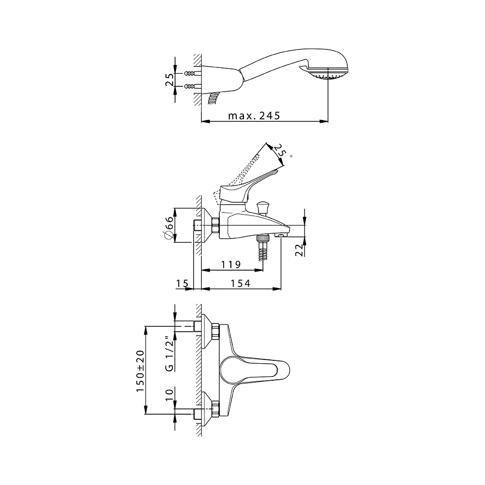 Set miscelatore lavabo + bidet + vasca MITO 3 Cisal