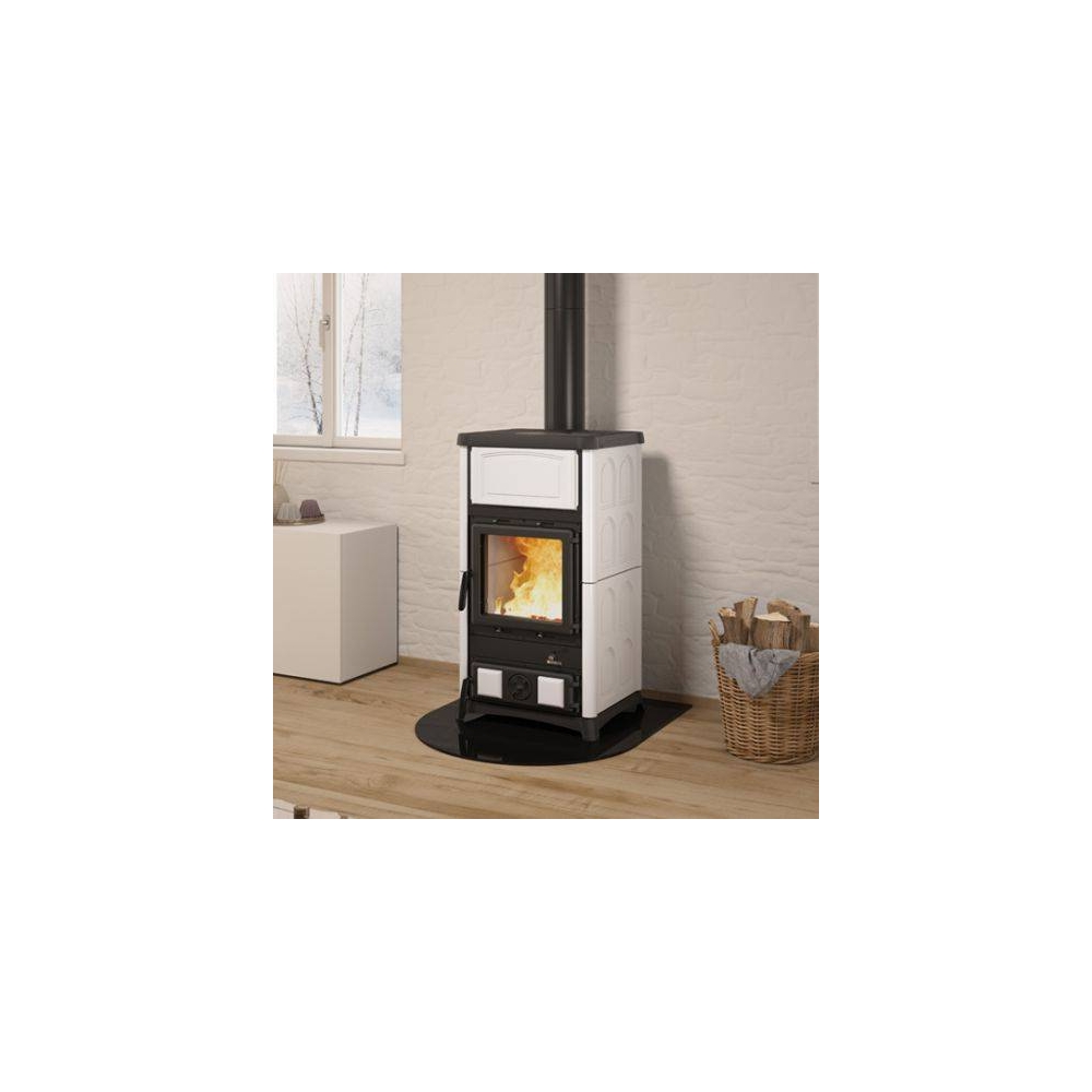 Prodotto certificato 5 stelle secondo i requisiti di emissioni e rendimento della certificazione Aria PulitaLa stufa a legna Concita: Rivestimento in maiolica lavorata a mano - rivestimento interno del focolare in ghisa-nordiker con post combustione - porte, telaio, basamento e testata in ghisa smaltata - cassetto cenere estraibile - aria primaria e secondaria regolabile per migliore gestione combustione - sistema di post-combustione per basse emissioni - vetro ceramico - sistema EPS per recupero calore - lunghezza max legna 30 cm