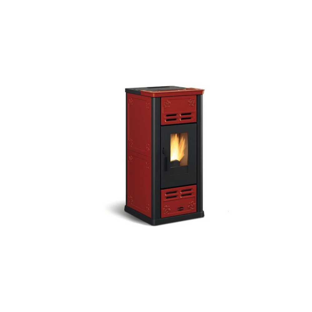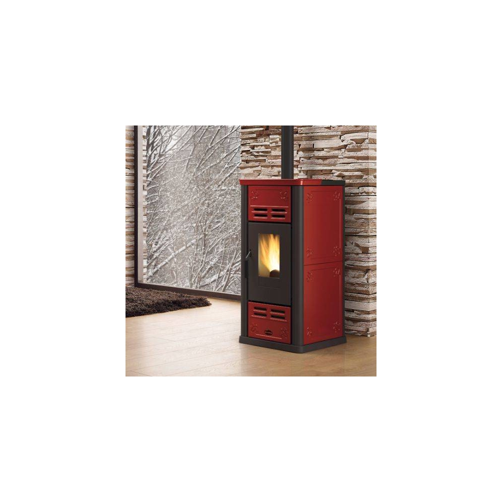 Stufa pellet ventilata: Porta fuoco, focolare e braciere in ghisa - Scambiatore di calore a superficie radiante - vano cenere estraibile - Ventilazione ambiente frontale con motore dedicato - Maniglia con impugnatura ergonomica - possibilità di uscita per lo scarico fumi: posteriore, superiore - Focolare estraibile da assistenza autorizzata