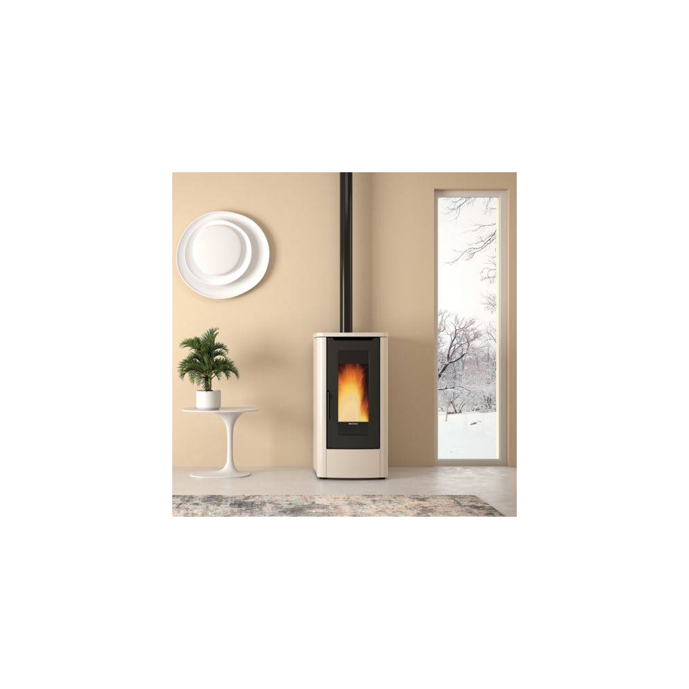 Stufe a pellet canalizzabili Nordica - Rivestimento in acciaio verniciato e top in maiolica - porta fuoco, focolare e braciere in ghisa - Scambiatore di calore a fascio tubiero - vano cenere estraibile - elevata capienza serbatoio di stoccaggio pellet (kg30) - ventilazione ambiente frontale con 2 motori dedicati e funzione comfort - doppia canalizzazione con 2 motori dedicati fino a 8 metri, termostabile ed escludibile - Possibilità di uscita per la canalizzazione (Ø 80 mm): posteriore - ampia visione della fiamma - maniglia con impugnatura ergonomica - possibilità di uscita per lo scarico fumi: posteriore in asse - focolare estraibile da assistenza autorizzata