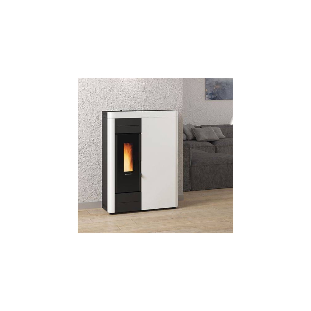 Camera di combustione in acciaio ad alto spessore - porta fuoco e braciere in ghisa - scambiatore di calore a fascio tubiero (pulizia manuale) - vano cenere estraibile - senza ventilazione - candeletta ceramica per accensione rapida - circolatore con controllo PWM - sonda in camera di combustione - Sicurezze termiche e di pressione acqua - valvola di sicurezza 3 bar - vaso di espansione - sfiato aria - trasduttore di pressione con visualizzazione su display - profondità ridotta - porta singola con doppio vetro (entrambi ceramici) - possibilità di uscita per lo scarico fumi: posteriore, superiore, laterale destro