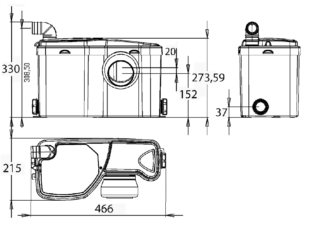 - Dimensioni: 466 x 215 x 330 mm