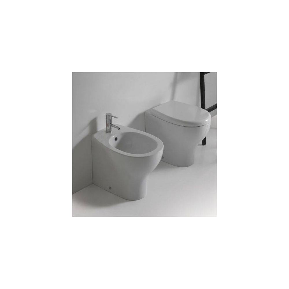 Vaso in ceramica con installazione filomuro a terraFINITURA : Bianco lucido